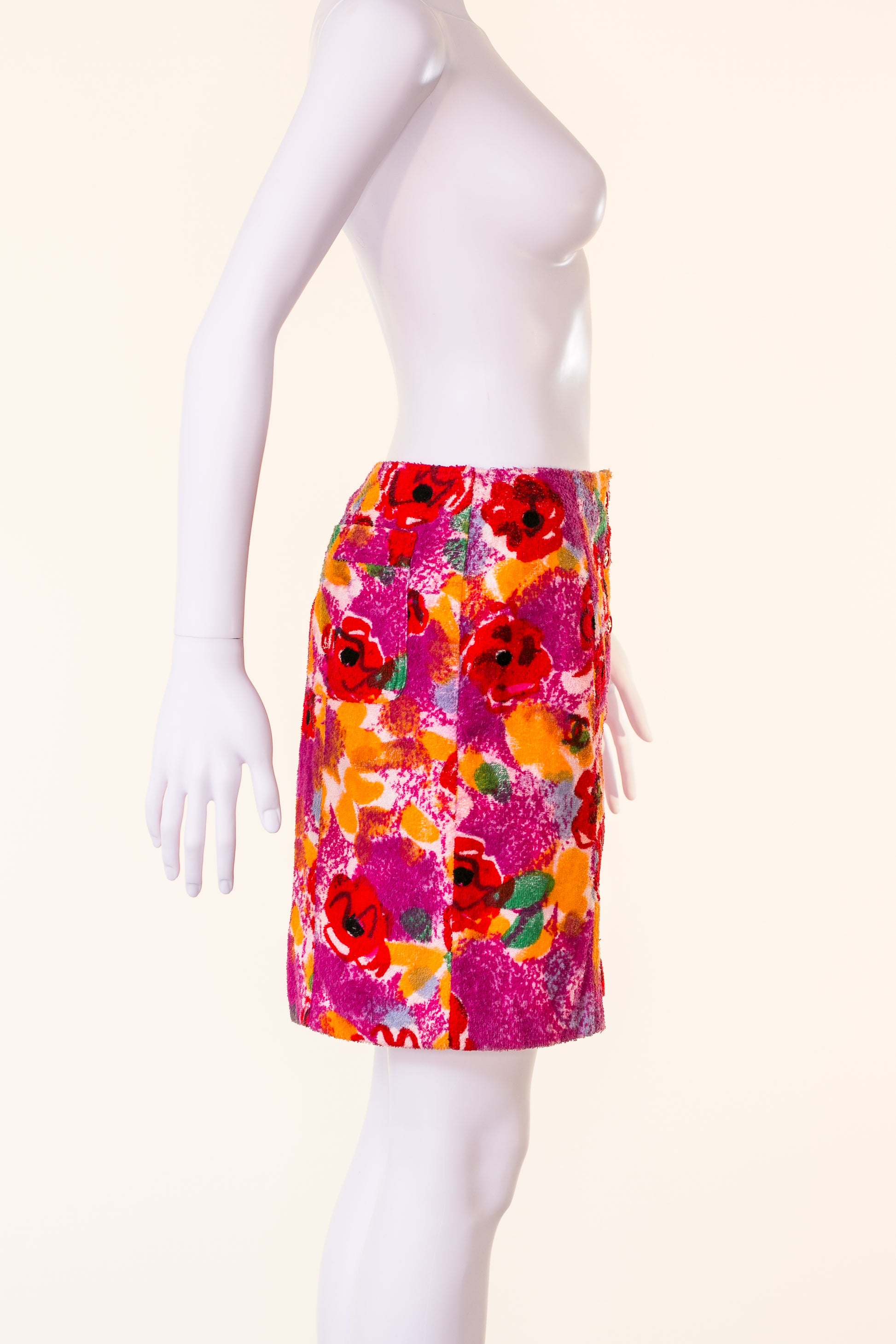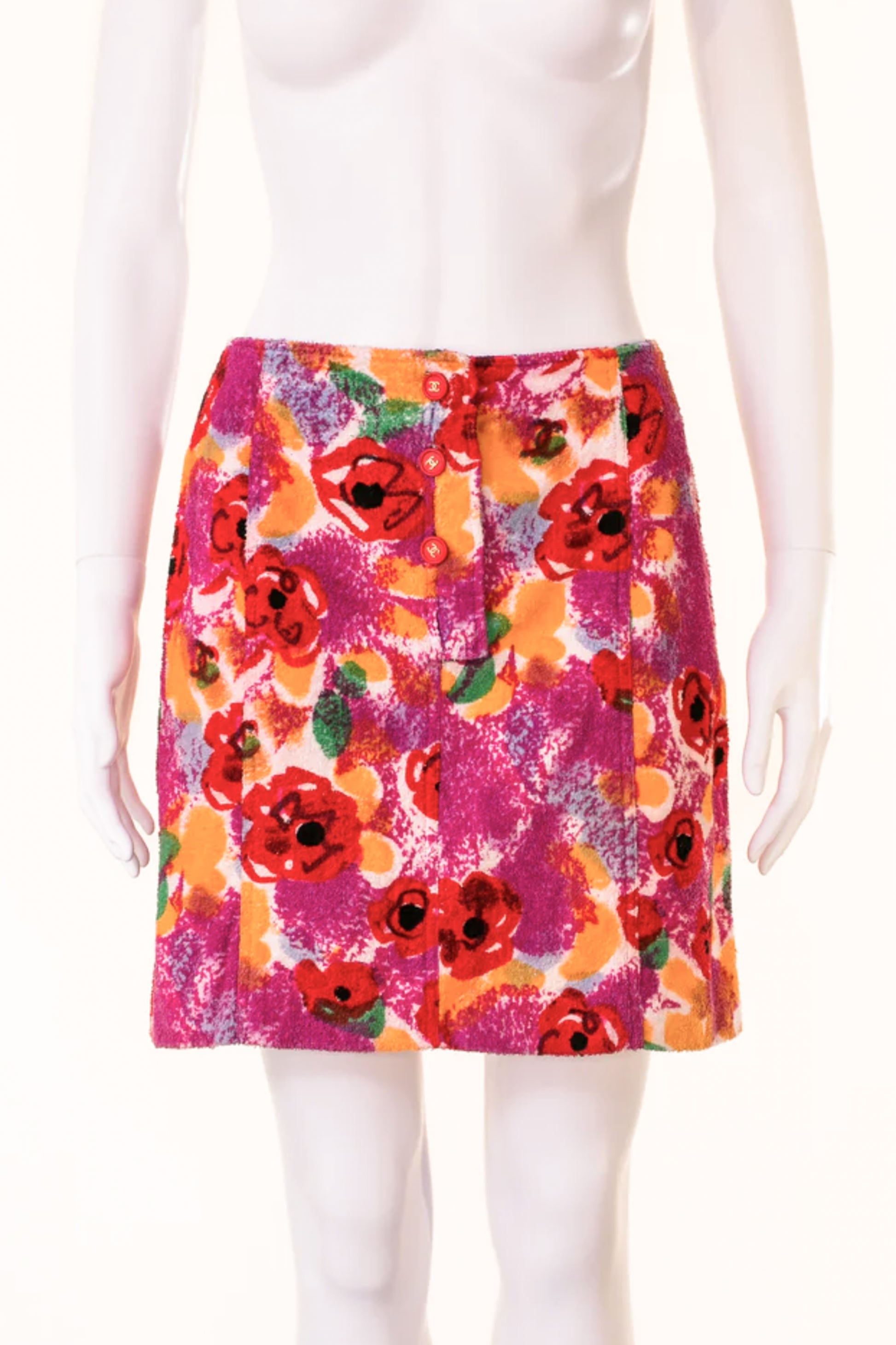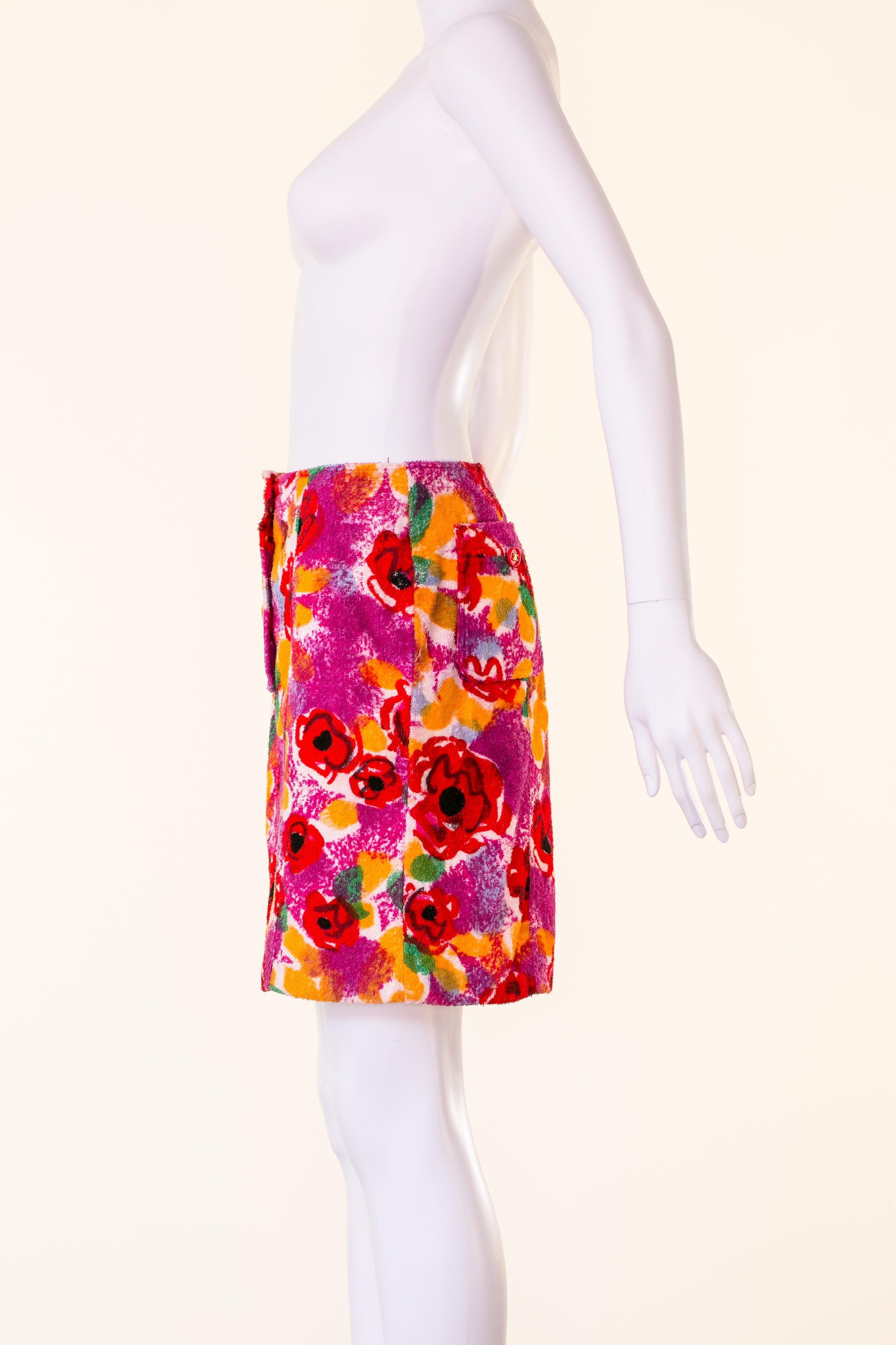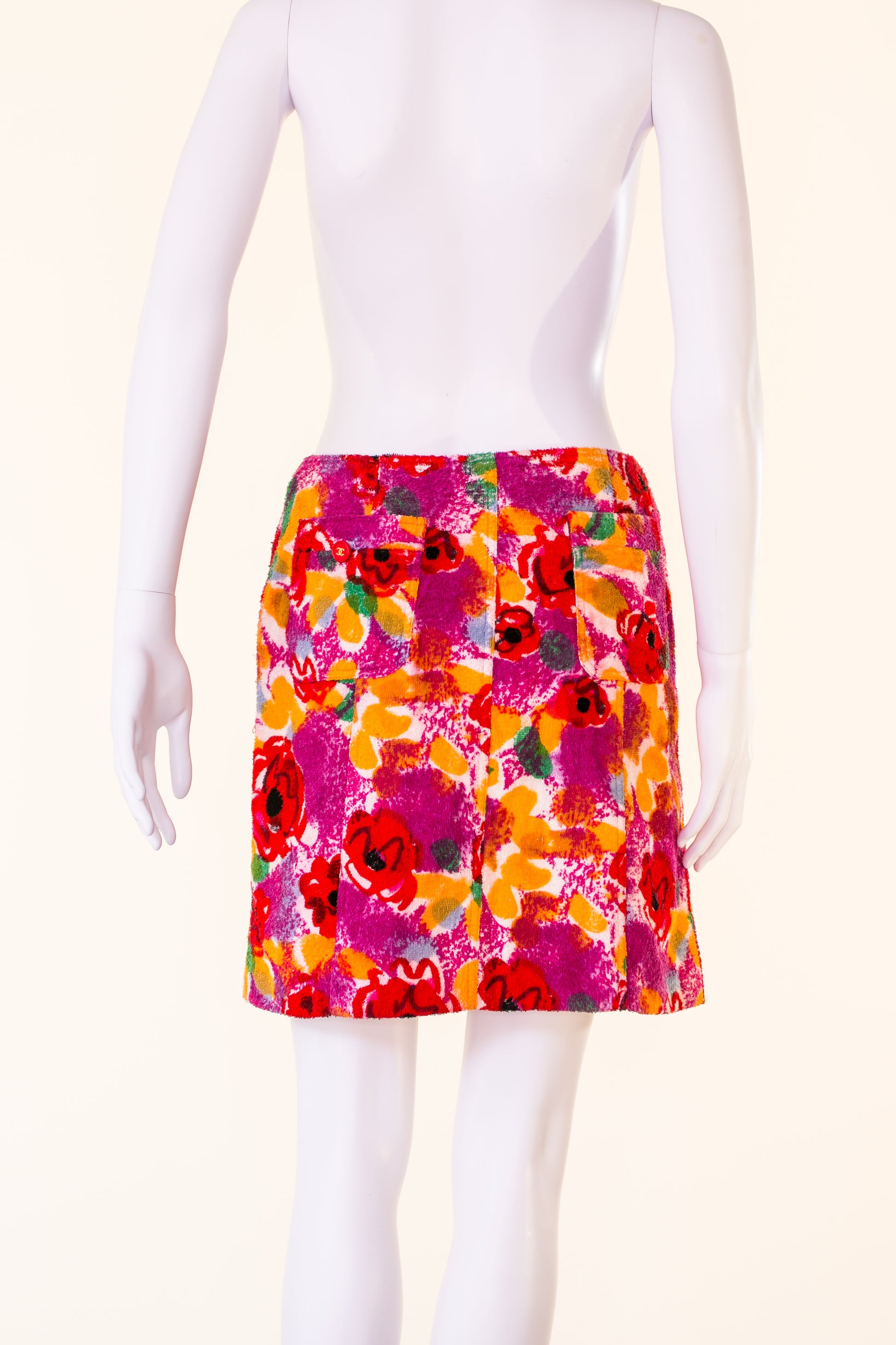 Spring-summer 1997 Chanel pastel Camellia flower mini skirt.