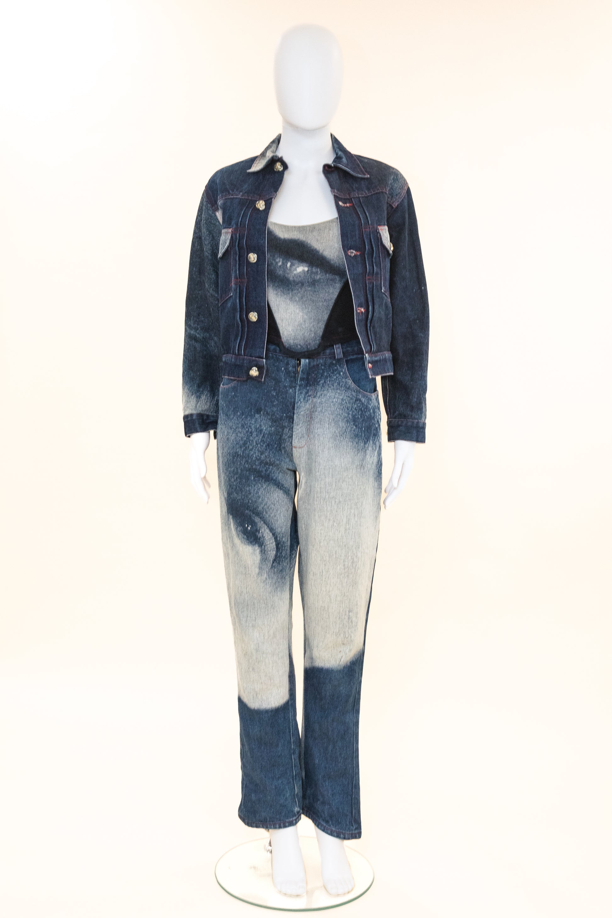 Rare complete ensemble of the Marlene Dietrich denim print.